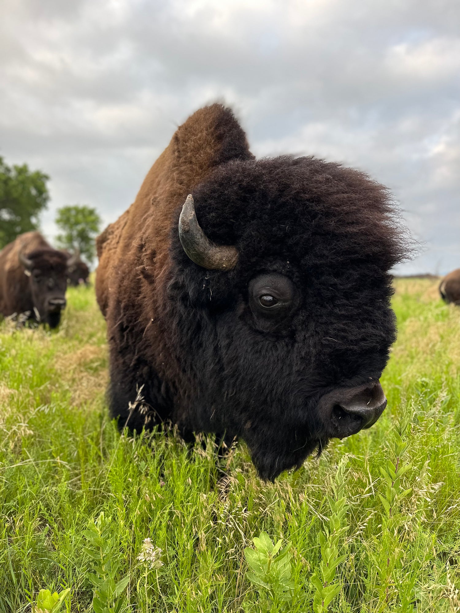 Born in 2017 and brought to our ranch in the spring of 2018, Dunbar carries the strong genetics of Canadian River Bison, bred by Doc Gerald Parsons out of Stratford, Oklahoma. Rugged, bold, and full of personality, Dunbar represents the grit and toughness of the open plains. His calves are hardy and adaptable, thriving in diverse conditions and adding vitality to the herd. Dunbar’s striking presence sets him apart, and his bloodline ensures strength and genetic diversity for generations to come.