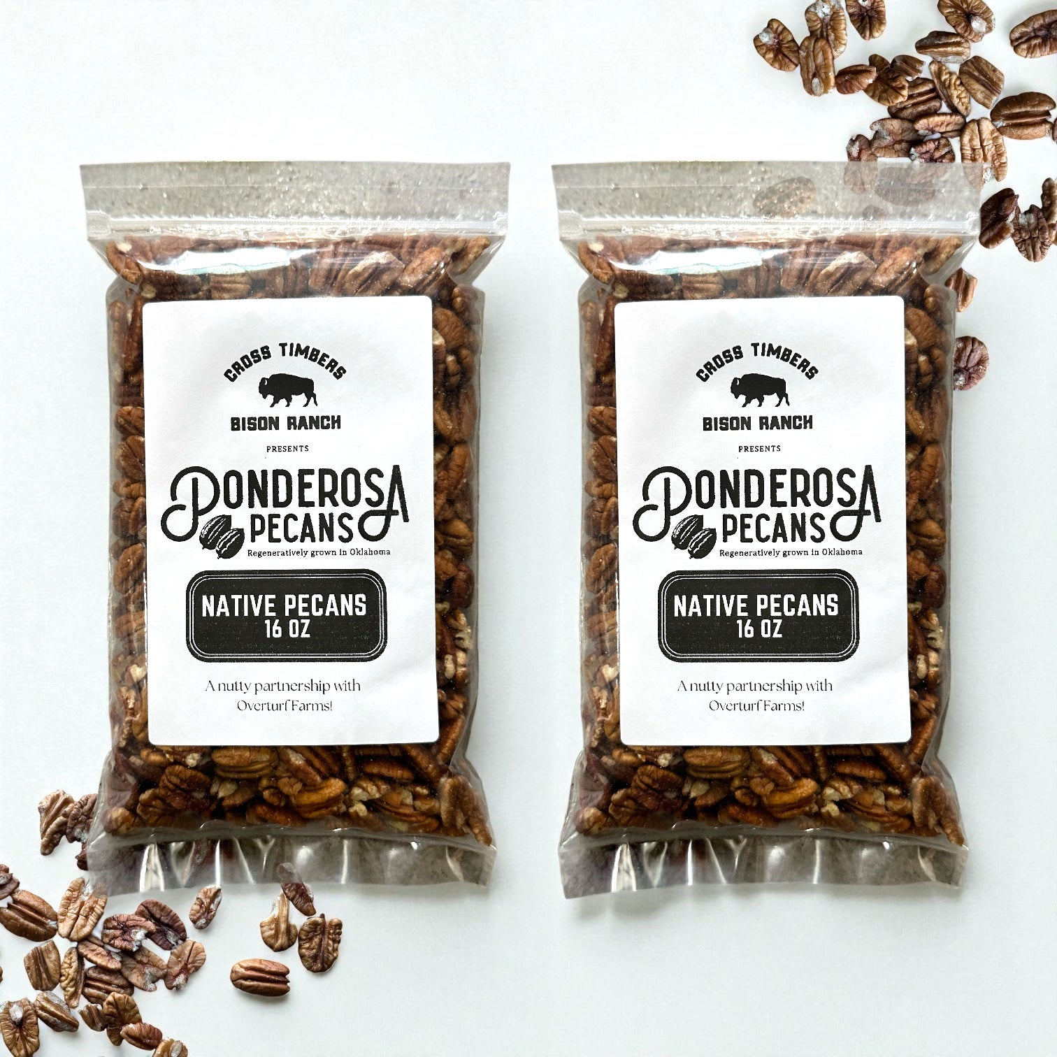 - 2 - 16-ounce bags of raw native Oklahoma pecans — perfect for baking, roasting, or snacking